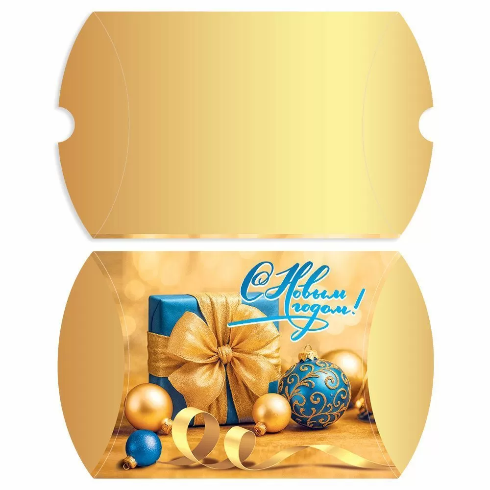 Коробочка-подушка – это идеальный способ красиво оформить подарок к Новому году и Рождеству. В нее можно положить конфеты или другие сладости, мини-игрушку, аксессуар, косметику, небольшой сувенир. Самосборная коробка с легкостью раскладывается и складывается, что дает возможность быстро и удобно упаковать подарок. Яркий оригинальный принт создает праздничное настроение. На коробочке изображены голубые и золотые новогодние шары и коробка-подарок. Универсальная новогодняя упаковка порадует и детей, и взрослых. Изготовлена из плотного картона. Размер изделия – 164х100 мм. В упаковке 10 шт.