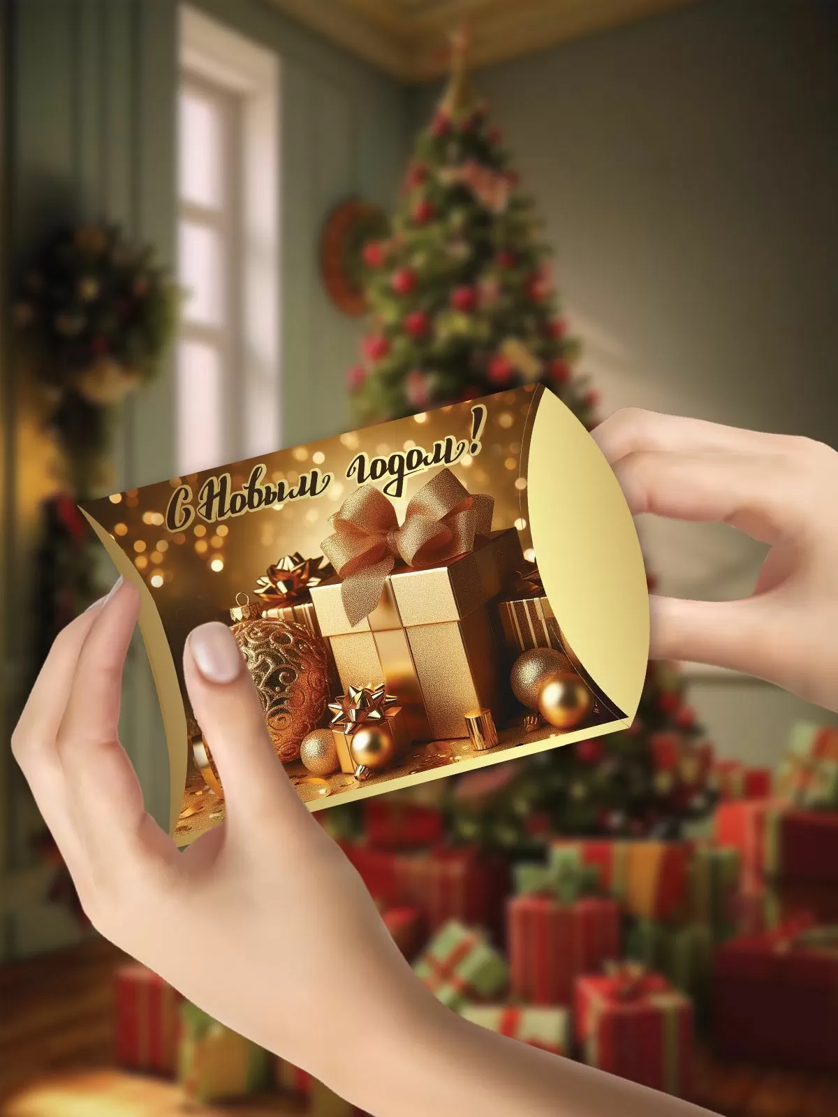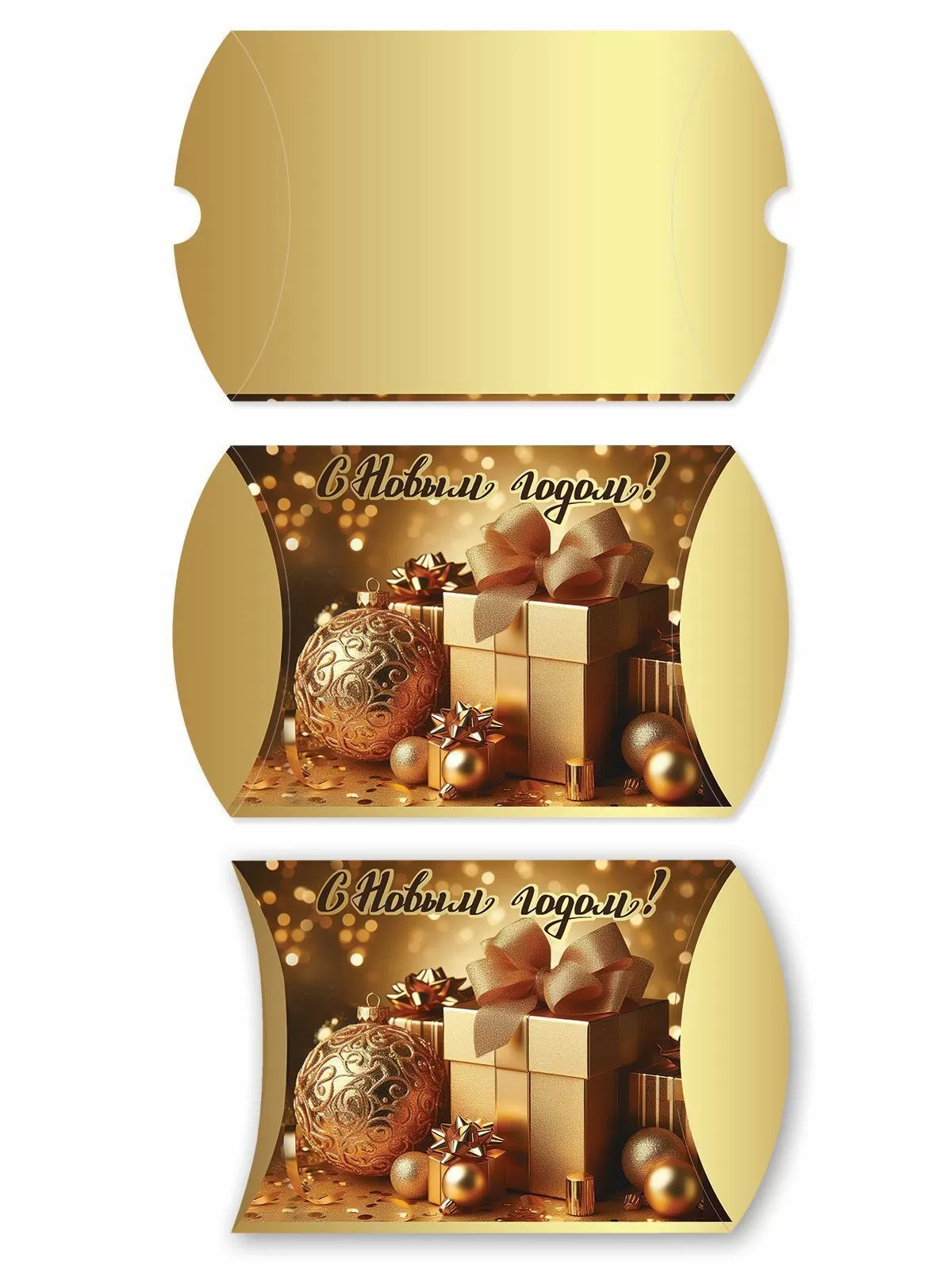 Коробочка-подушка для упаковки ювелирных изделий или небольших подарков. Изготовлена из плотного картона, который хорошо держит форму. Размер собранного изделия - 100х135 мм. Печать - односторонняя, сверху на картонную основу нанесен четкий принт, а внутри коробочка - белая. В упаковке 10 штук.
