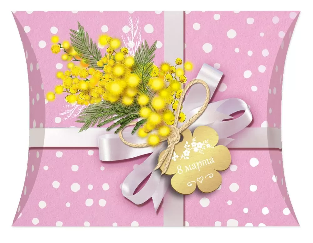 Коробочка-подушка для упаковки ювелирных изделий или небольших подарков. Изготовлена из плотного картона, который хорошо держит форму. Размер собранного изделия - 100х135 мм. Печать - одностороняя, сверху на картонную основу нанесен четкий принт, а внутри коробочка - белая. В упаковке 10 штук.
