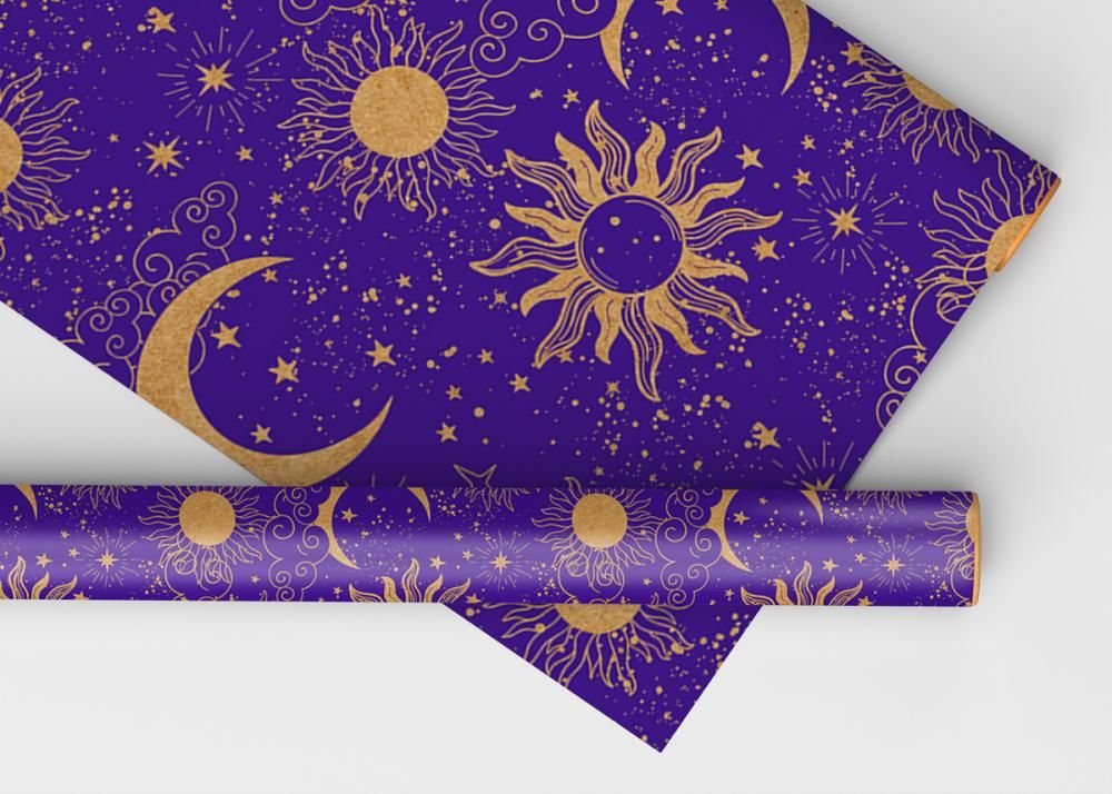 Набор упаковочной бумаги формата А0 предназначен для профессиональной и розничной упаковки подарков и сувенирной продукции. Изделие выполнено из плотной бумаги с односторонней полноцветной печатью: на лицевой стороне размещен орнамент в виде солнца, луны и звезд в золотистой гамме на насыщенном фиолетовом фоне, оборотная сторона светлая, без рисунка, что облегчает разметку и подгонку по размеру. Готовый лист имеет длину 974 мм и ширину 674 мм, что позволяет использовать его для упаковки средних и крупных коробок, комбинировать несколько листов для габаритных изделий, а также нарезать на фрагменты для небольших подарков. Бумага подходит для ручной упаковки на кассовых зонах, в отделах подарков, книжных магазинах, шоурумах, студиях флористики и декора, обеспечивая стабильное качество оформления при поточном обслуживании. Плотность материала оптимальна для формирования ровных сгибов и фиксации скотчем или клейкими лентами без разрывов и заломов, при этом листы удобно хранить как в рулонах, так и в плоских стопках. Поверхность устойчива к смятию при аккуратной транспортировке, не просвечивает содержимое упаковки и сохраняет рисунок при стандартных условиях эксплуатации в торговых залах и на складах. Универсальный тематический дизайн уместен для сезонных и круглогодичных продаж, подходит для праздничного, новогоднего и тематического оформления, а также для индивидуальной упаковки подарков в быту. В упаковке 1. Отсутствие текста внутри позволяет использовать бумагу в любых сценариях без привязки к конкретному событию или бренду, что удобно при формировании ассортимента для оптовых закупок и последующей розничной реализации.