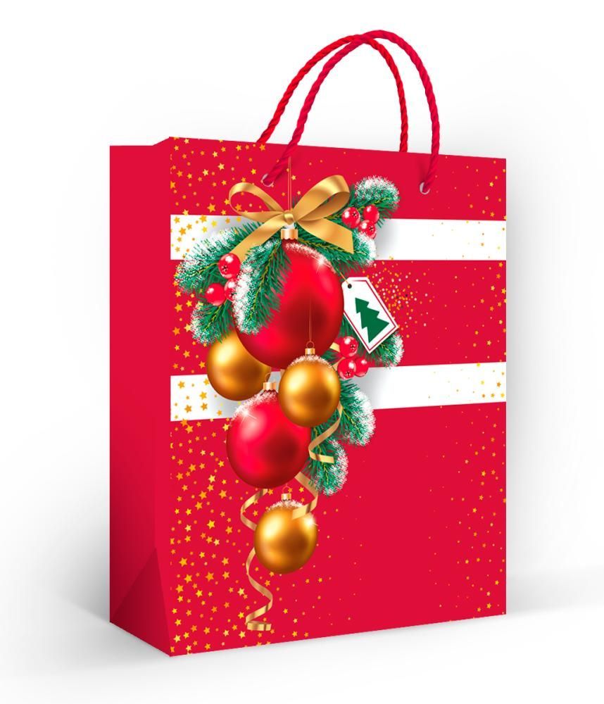 Пакет бумажный подарочный формата M изготовлен из плотной мелованной бумаги с матовой ламинацией, что обеспечивает стабильную форму, аккуратный внешний вид и повышенную износостойкость при транспортировке и хранении. Габариты готового изделия 227 × 180 мм позволяют использовать пакет для упаковки средних по размеру сувениров, косметики, аксессуаров, канцелярии, небольших наборов сладостей и подарочных комплектов. Матовая ламинация защищает красочный новогодний рисунок от истирания, выгорания и влаги при кратковременном контакте, за счет чего пакет подходит для выкладки в торговом зале и многоэтапной логистики от склада до конечного получателя. Конструкция с боковыми фальцами обеспечивает удобное раскрытие и устойчивость на горизонтальной поверхности, что важно при поточном упаковывании на кассовых зонах и в отделах подарочной упаковки. Ручки-шнуры из синтетического материала закреплены через отверстия в верхней кромке и рассчитаны на перенос изделий весом, типичным для подарков данного формата; мягкая фактура шнура снижает давление на руку при переноске. Дизайн выполнен в ярко-красной гамме с изображением еловых веток и новогодних шаров, без текстовых надписей, что позволяет использовать пакет в широком ассортименте сезонных предложений, не привязывая его к конкретному бренду или событию и упрощая унификацию закупок для сетевой розницы и корпоративных клиентов. Отсутствие дополнительных декоративных элементов упрощает штабелирование, экономит место при хранении и транспортировке, а также снижает риск повреждений при групповой упаковке. В одной упаковке поставляется 10 пакетов, что удобно для формирования запасов на период праздничного спроса и планирования расхода упаковочных материалов как в розничной, так и в корпоративной сегментации.
