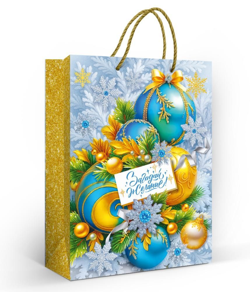Пакет бумажный подарочный формата ML выполнен из прочной мелованной бумаги с матовой ламинацией, что обеспечивает устойчивость к истиранию, влаге и деформации при стандартных нагрузках, характерных для розничной и оптовой упаковки подарков. Размер готового изделия 310 × 220 мм позволяет использовать пакет для средних по габаритам презентов: наборов косметики, текстиля, сувенирной продукции, канцелярии, кондитерских изделий в коробках. Матовая ламинация придаёт поверхности дополнительную жёсткость, способствует сохранению формы дна и стенок при транспортировке и выкладке, а также облегчает сухую очистку от пыли и следов касаний. Конструкция с прочными шнуровыми ручками рассчитана на многократное поднятие и перенос веса типичных подарочных наборов; ручки закреплены через отверстия с внутренним усилением, что снижает риск разрыва при нагрузке и позволяет использовать пакет в торговых сетях и сувенирных отделах как готовое решение для упаковки. Дизайн ориентирован на новогоднюю и зимнюю тематику: на лицевой стороне размещена композиция из ёлочных шаров, хвои, снежинок и декоративных элементов в сине‑золотой гамме, боковые стороны оформлены под золотистую текстуру, что создаёт законченный вид при экспонировании на витрине или стеллаже. Внутри пакет без текста и дополнительной печати, что удобно для универсального применения в корпоративных и частных подарках, а также при комбинировании с любыми цветовыми решениями наполнения. Плотность материала и ламинирование обеспечивают стабильную геометрию при хранении стопой и минимизируют повреждения при групповом складировании и перевозке. В упаковке 10 штук, что удобно для планирования оптовых закупок, формирования ассортимента по сезонам и расчёта потребности в упаковке на акции, корпоративные мероприятия и праздничные продажи.