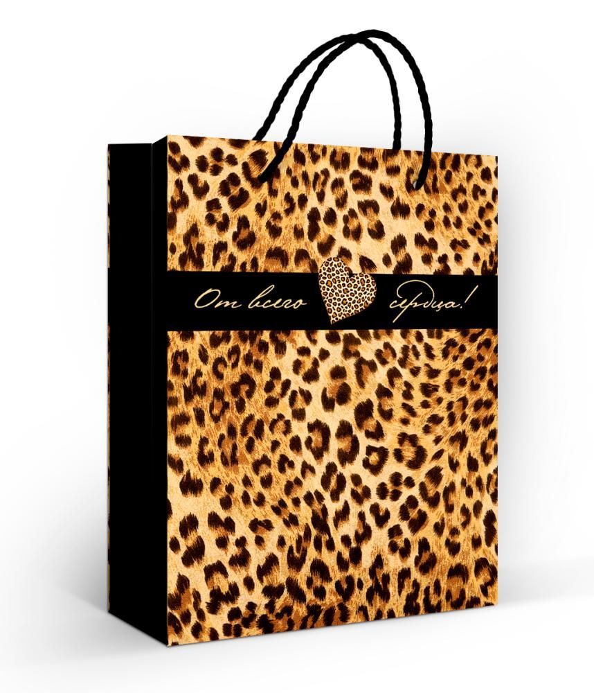 Пакет бумажный подарочный формата M изготовлен из мелованной бумаги с матовой ламинацией, что обеспечивает стабильную геометрию изделия и устойчивость к истиранию при транспортировке и хранении. Размеры готового пакета составляют 229 мм по высоте и 180 мм по ширине, что удобно для упаковки средних по габаритам подарков, сувениров, аксессуаров, косметики и текстильной продукции. Плотная мелованная бумага в сочетании с ламинацией формирует жесткие стенки, позволяющие выдерживать типичную для данного формата нагрузку и сохранять форму при заполнении объемными предметами. Конструкция дополнена шнуровыми ручками из прочного материала, зафиксированными в верхней кромке, что повышает надежность при переноске и многократном использовании. Внешняя поверхность оформлена полноцветным рисунком под леопардовый мех с контрастной черной полосой по центру и декоративным сердцем, на которой размещена надпись «От всего сердца!», благодаря чему пакет подходит для вручения подарков на дни рождения, романтические поводы, семейные торжества и тематические мероприятия. Внутренняя сторона без текста, что упрощает универсальное применение в розничной и корпоративной упаковке. Формат и дизайн позволяют включать данный пакет в ассортимент магазинов подарков, салонов цветов, бутиков одежды и аксессуаров, а также использовать в качестве стандартного решения для упаковки готовых наборов. Поставляется по 10 штук, что удобно для планирования складских остатков, выкладки и формирования однородной линейки упаковки по стилю и размеру.