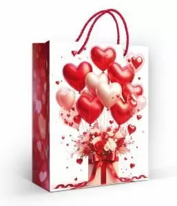 Пакет подарочный (М) «Шарики-сердечки и подарок»