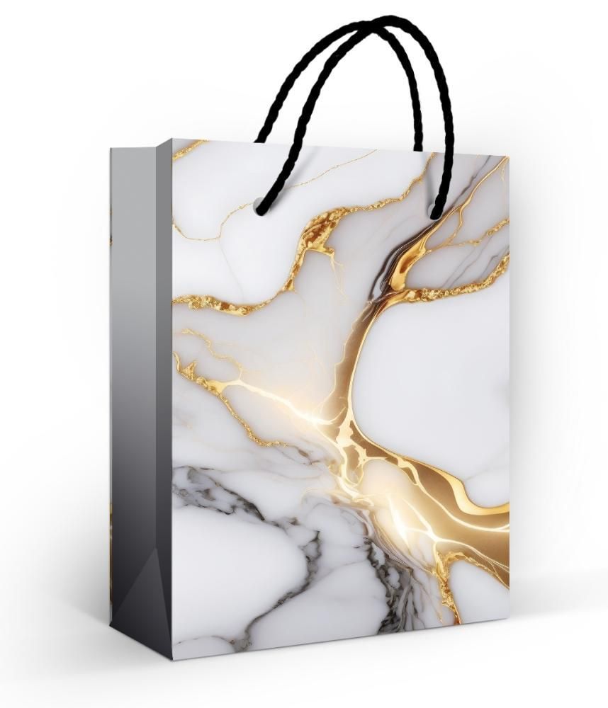 Пакет бумажный подарочный формата S изготовлен из плотной мелованной бумаги с матовой ламинацией, что обеспечивает устойчивость к истиранию, сохранение печати и аккуратный внешний вид при многократном использовании. Размер готового изделия 135 × 110 мм оптимален для упаковки небольших подарков, сувениров, аксессуаров, косметики и мелких предметов одежды, что удобно как для розничной продажи, так и для формирования стандартного ассортимента упаковки в магазинах, шоурумах и сервисных компаниях. Матовая ламинация снижает риск появления заломов, защищает поверхность от влаги и загрязнений, позволяет пакетам дольше сохранять форму при хранении и транспортировке, в том числе в условиях складского оборота. Конструкция с прочными шнуровыми ручками рассчитана на комфортное перенесение содержимого, равномерно распределяет нагрузку и уменьшает вероятность разрыва в местах крепления, что важно при использовании пакета в торговых точках и на выдаче заказов. Дизайн с имитацией мраморной фактуры с золотистыми прожилками выполнен полноцветной печатью по всей лицевой поверхности и визуально подходит для широкого спектра поводов: дни рождения, корпоративные мероприятия, свадебные и праздничные наборы, презентационные и промо-наборы. Отсутствие внутреннего текста делает пакет универсальным для разных целевых аудиторий и тематик, что упрощает планирование закупок и минимизирует остатки сезонной продукции. В упаковке 10 изделий, что удобно для оптового пополнения запасов и позволяет формировать равномерные выкладки на полке или комплектовать стандартные наборы упаковки для розничных клиентов и интернет-заказов. Благодаря сочетанию компактного формата, прочного материала и нейтрального, но выразительного оформления пакет может использоваться как самостоятельный элемент подарочной упаковки без дополнительной обертки.