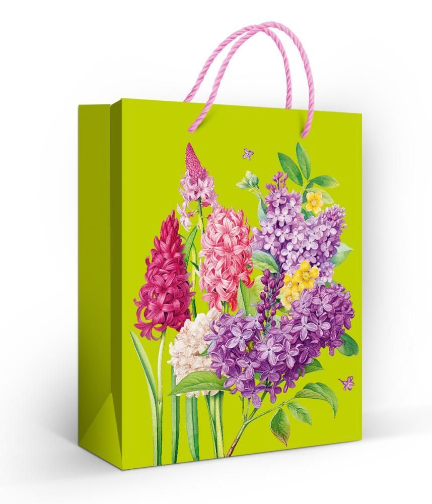 Пакет бумажный подарочный формата M изготовлен из мелованной бумаги с матовой ламинацией, что обеспечивает стабильную геометрию, аккуратный внешний вид и дополнительную защиту печати от истирания при транспортировке и хранении. Размер готового изделия 227 × 180 мм позволяет использовать пакет для упаковки средних по габаритам подарков, сувенирной продукции, косметики, парфюмерии, текстиля и сопутствующих товаров, что удобно при формировании универсального ассортимента для розничных точек и интернет‑магазинов. Плотная бумага в сочетании с ламинированной поверхностью выдерживает стандартную нагрузку для данного формата и снижает риск разрывов в зоне сгибов и дна при многократных переносках. На лицевой стороне размещен полноцветный рисунок с крупным букетом весенних цветов на однотонном ярком фоне, без надписей, что делает оформление нейтральным и пригодным для широкого спектра поводов: дни рождения, сезонные и календарные праздники, корпоративные мероприятия, презенты клиентам и партнерам. Отсутствие текстовой составляющей облегчает интеграцию пакета в ассортимент разных торговых концепций и позволяет использовать его как в розничной продаже поштучно, так и в составе готовых подарочных наборов. Скрученные ручки из шнура визуально согласованы с дизайном и рассчитаны на комфортный захват, что важно при выдаче покупок в магазинах и на мероприятиях. Конструкция пакета поставляется в плоском виде, что упрощает складское хранение, оптимизирует логистику и уменьшает требуемый объем на полке или в упаковочном столе. В одной упаковке 10 штук, что удобно для планирования закупок, формирования запасов и равномерного распределения по торговым точкам или отделам.