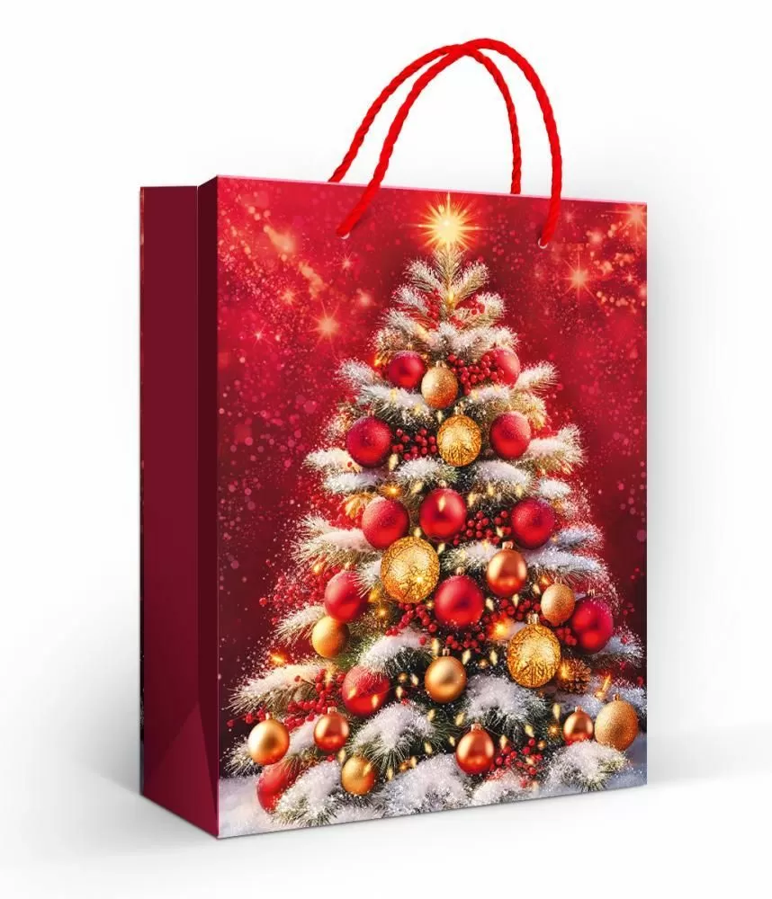 Подарочный новогодний пакет «Нарядная елочка» в размере M – это стильное украшение и удобная упаковка для любого подарка. Яркий праздничный дизайн в новогодне-зимней тематике сделает поздравление особенным и оригинальным. На пакете изображена нарядная пушистая елка с золотыми и красными шарами и ветками, которые припорошил снег. Изделие выполнено из прочной мелованной бумаги высшего качества. Прочные ручки надежно выдержат любой вес. Внутрь такого пакета можно поместить коробки с подарками, конфеты, свертки и многое другое.