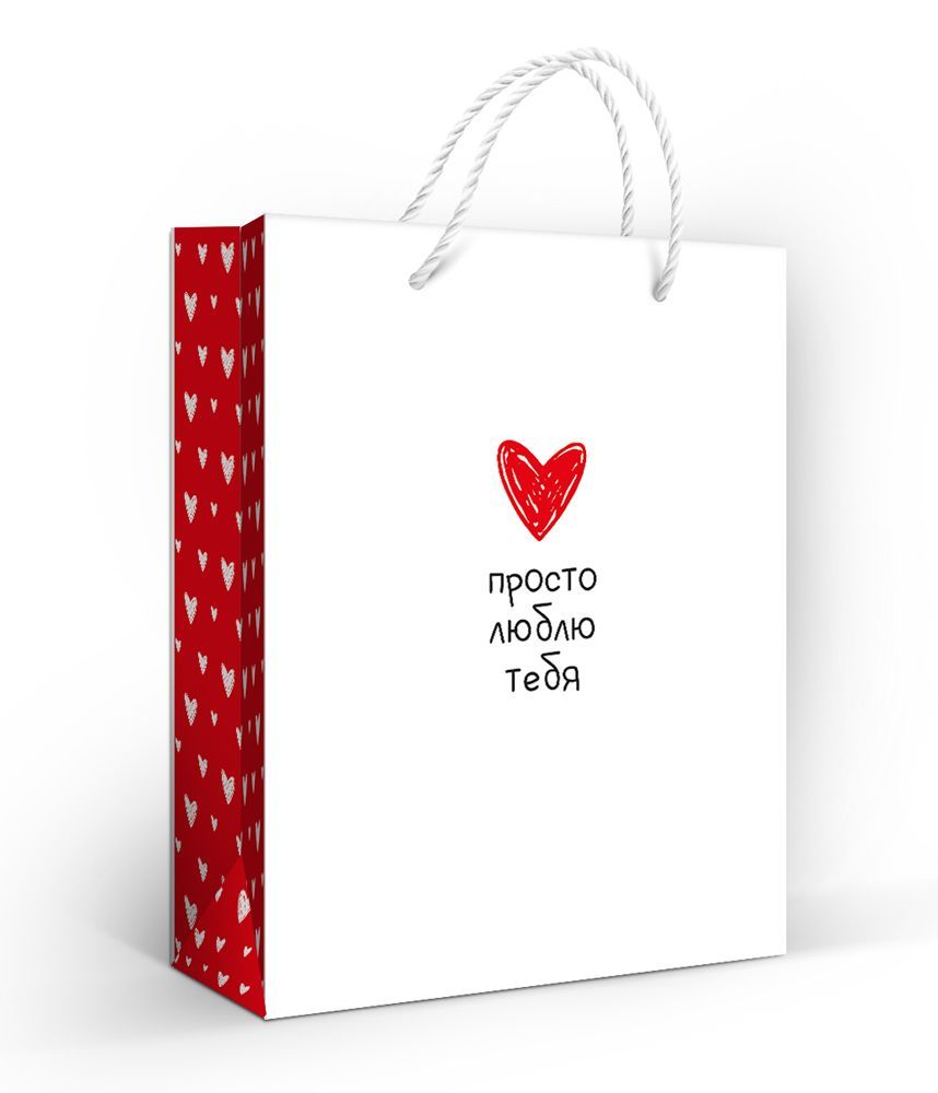 Пакет подарочный «Просто люблю тебя» (M) (красное сердечко)