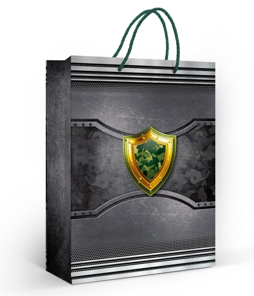 Пакет бумажный подарочный формата ML изготовлен из мелованной бумаги с матовой ламинацией, что обеспечивает стабильную геометрию, аккуратный внешний вид и повышенную стойкость к истиранию при транспортировке и складском хранении. Размер готового изделия 310 × 220 мм позволяет использовать пакет для упаковки средних по габаритам подарков и сувенирной продукции: коробок с косметикой, аксессуаров, текстиля, канцелярии, детских наборов. Плотная мелованная бумага в сочетании с ламинированной поверхностью выдерживает стандартную нагрузку для подарочных пакетов данного формата, не деформируется при кратковременном воздействии влаги и сохраняет печать без выцветания при регулярном использовании в торговом зале. Конструкция с текстильными шнуровыми ручками обеспечивает равномерное распределение веса и удобство переноски, ручки надежно закреплены в верхнем клапане, что важно при серийной эксплуатации в розничных магазинах и при выдаче упаковки на кассовой зоне. Дизайн выполнен в темно-серой металлической гамме с центральным щитом золотого цвета и камуфляжным рисунком, что делает пакет подходящим для мужских подарков, тематических военных и спортивных мероприятий, корпоративных награждений и сувениров. Отсутствие текста внутри и на внешних сторонах позволяет использовать изделие в широком ассортименте без привязки к конкретному празднику, что удобно для оптовых закупок и планирования остатков. Внутренняя поверхность имеет однородную структуру, пакет устойчиво стоит за счет правильной формы дна, компактно складывается, не занимая много места при хранении на складе или в торговой точке. Упаковка содержит 10 изделий, что удобно для формирования небольших и средних партий при оптовых поставках и позволяет гибко пополнять ассортимент подарочной упаковки.