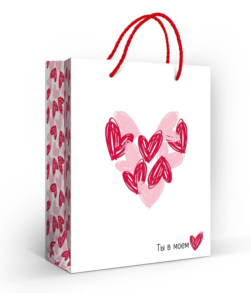 Пакет подарочный «Ты в моем сердце» (M) (розовые сердечки)
