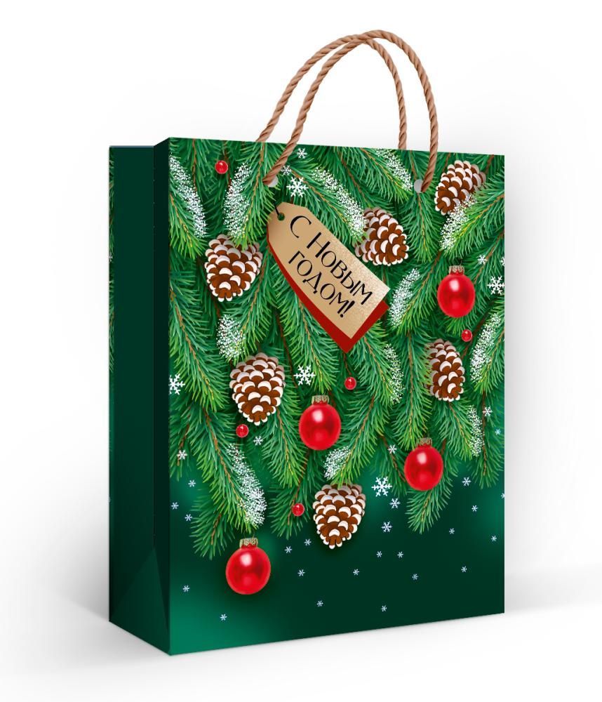 Пакет бумажный подарочный формата MS изготовлен из мелованной бумаги с матовой ламинацией, что обеспечивает достаточную плотность, износостойкость и аккуратный внешний вид при складском и торговом обращении. Размер готового изделия 180 × 135 мм позволяет использовать пакет для фасовки и выдачи небольших подарков, сувенирной продукции, косметики, аксессуаров и кондитерских наборов. Конструкция оснащена шнуровыми ручками, закрепленными через усиленные отверстия, что повышает надежность при переноске и снижает риск разрыва в зоне крепления. Матовая ламинация защищает красочный слой от истирания, сохраняет насыщенность рисунка при многократном контакте и облегчает протирку поверхности от случайных загрязнений. На лицевой стороне размещен новогодний рисунок с еловыми ветвями, шишками, красными шарами и подвесной этикеткой с надписью «С Новым годом!», благодаря чему пакет может использоваться как готовое праздничное оформление без дополнительной упаковки. Внутренняя поверхность без текста и декоративных элементов, что удобно для универсального применения в различных торговых концепциях и не отвлекает внимание от вложенного товара. Компактные габариты пакета обеспечивают рациональное хранение и транспортировку крупного оптового объема, минимизируя занимаемое место на складе и в торговом зале. В одной упаковке 10 единиц, что удобно для планирования закупок, формирования выкладки и комплектации подарочных наборов в розничных сетях, корпоративных программах и новогодних промоакциях.