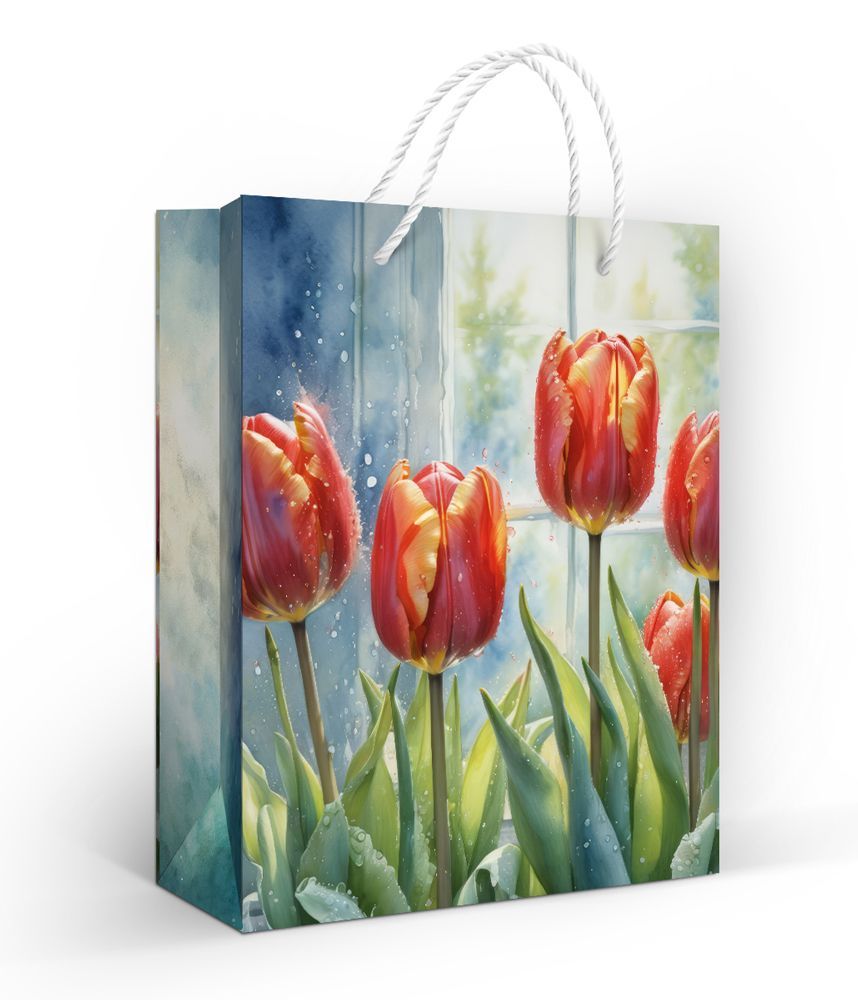 Пакет бумажный подарочный формата M изготовлен из плотной качественной бумаги, рассчитанной на регулярное использование в розничной и подарочной упаковке. Размер готового изделия 227 × 180 мм обеспечивает размещение стандартных по габаритам подарков: парфюмерии, косметических наборов, аксессуаров, текстиля небольшого формата, сувенирной продукции и канцелярии. Материал устойчив к деформации при вертикальной нагрузке, что важно при транспортировке и выкладке на витрине, а также позволяет использовать пакет в сервисных зонах магазинов и салонов в качестве основной упаковки. Внешняя поверхность оформлена полноцветным изображением тюльпанов в реалистичной живописной манере, что делает пакет универсальным решением для весенних праздников, дней рождения, поздравлений коллег и клиентов. Отделка: ламинация матовая, она повышает износостойкость, защищает краску от истирания и влаги, облегчает хранение пакетов в стопках и предотвращает залипание при транспортировке. Внутренняя сторона без текста и дополнительных элементов, что удобно для унифицированного использования в различных сегментах торговли и при корпоративных закупках. Конструкция с плоским дном обеспечивает устойчивое положение пакета на поверхности, что упрощает процесс упаковки на кассовой зоне и при самостоятельной подготовке подарков. Скрученные шнуровые ручки из прочного синтетического материала надежно закреплены, выдерживают вес типичных подарочных наборов и сохраняют форму при многократном использовании. Пакеты поставляются в упаковке по 10 штук, что удобно для планирования складских остатков, формирования ассортиментной матрицы и оптимизации затрат на единицу упаковки при оптовых закупках.