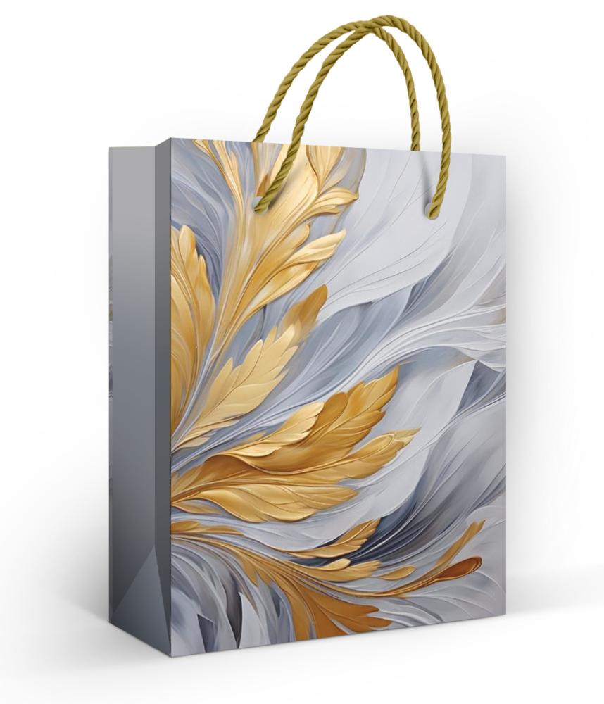 Пакет подарочный «Золотые перья» (S) (серо-золотой)
