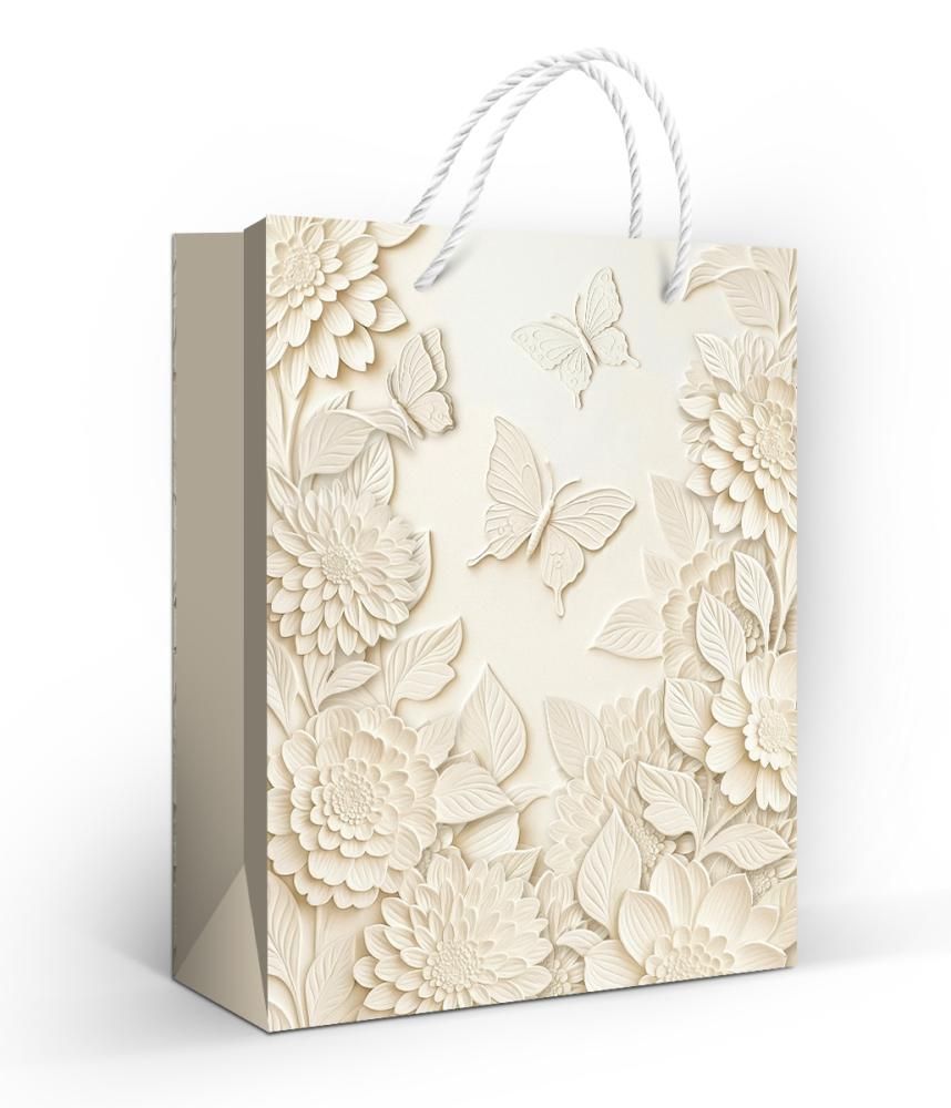 Пакет подарочный «Бабочка и цветы» (M) (цветы и бабочки)