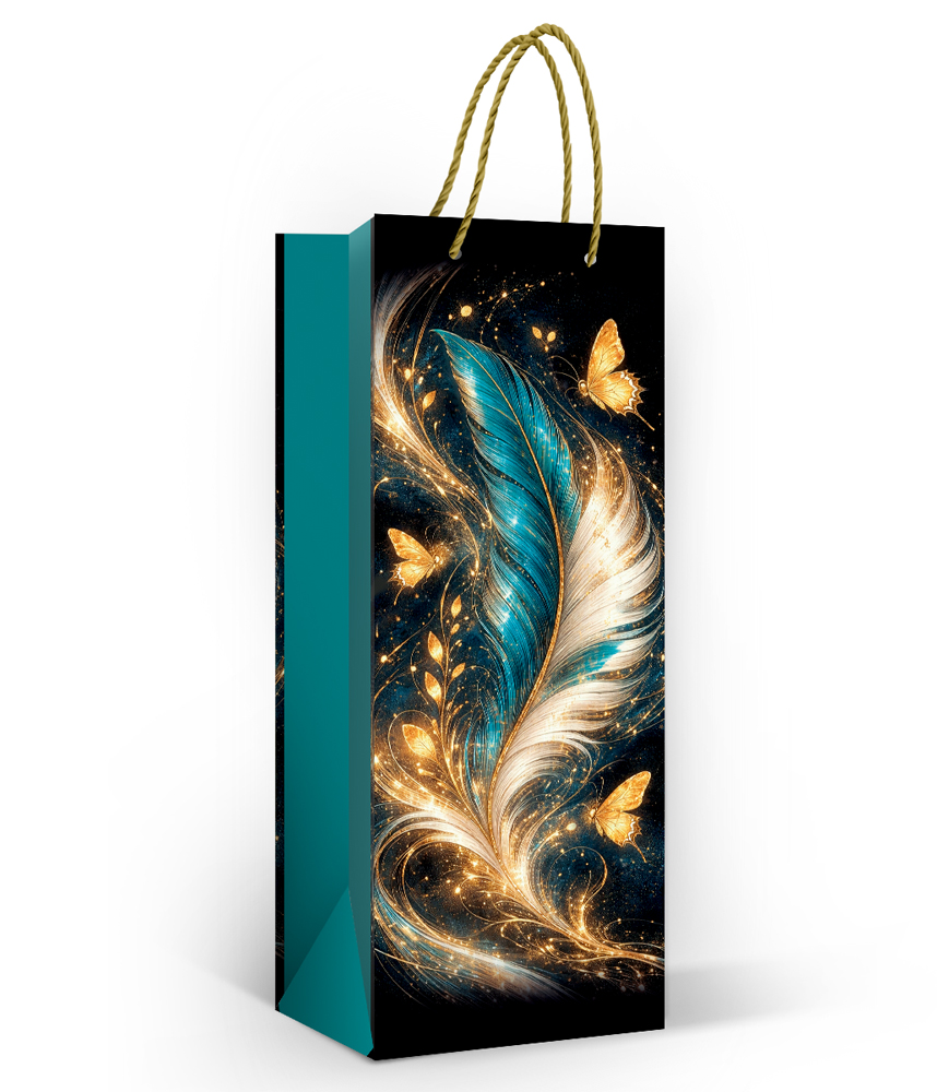 Пакет под бутылку "Перо и бабочки" (В) (перо и золотые бабочки)