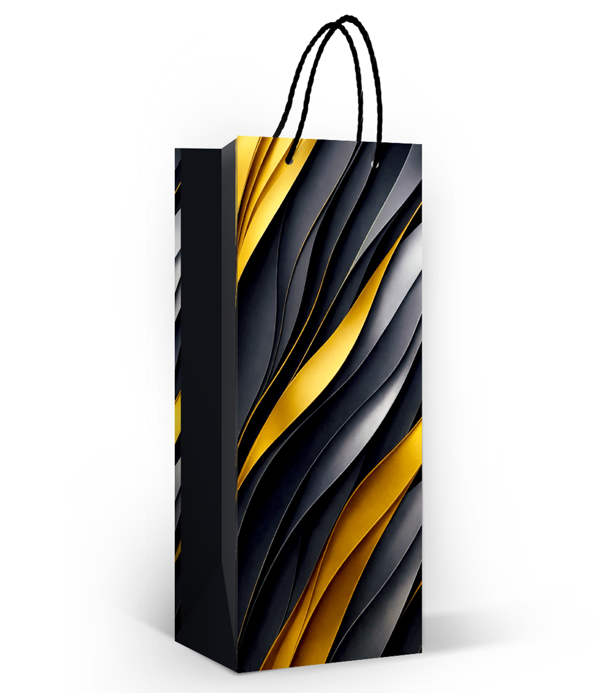 Пакет под бутылку "Золото и сталь" (В) (золотые и стальные волны)