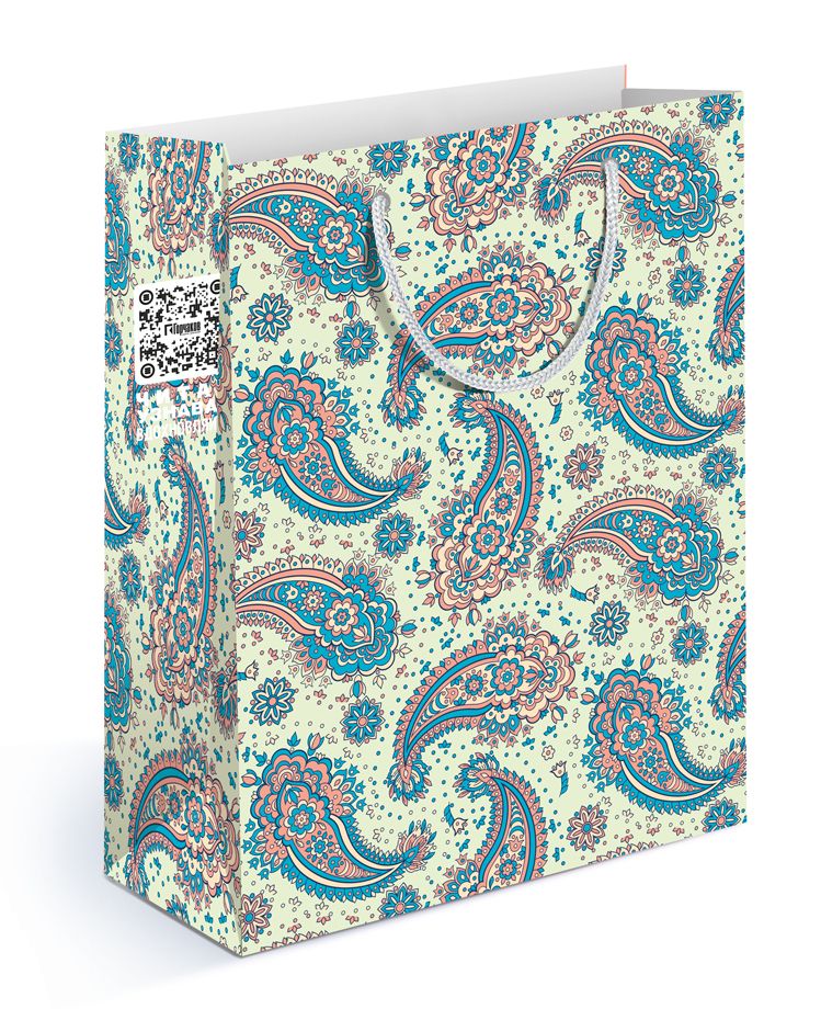 Пакет бумажный подарочный формата MS изготовлен из плотной бумаги с глянцевой ламинацией, что повышает износостойкость поверхности, устойчивость к истиранию и сохранность печати при многократной транспортировке и хранении. Размер готового изделия 180 × 135 мм обеспечивает размещение компактных и средних по объему подарков, сувенирной и канцелярской продукции, косметики, аксессуаров и небольших текстильных изделий. Конструкция пакета предусматривает плоское дно и боковые складки, за счет чего пакет поставляется в сложенном виде, занимает минимум места на складе и позволяет оптимизировать логистику и выкладку при оптовых поставках. Ручки выполнены из шнура, закрепленного в верхней кромке, что обеспечивает равномерное распределение нагрузки и удобство переноса содержимого. Фигурная вырубка по контуру придает изделию аккуратный, законченный вид и облегчает формирование правильной геометрии при раскрытии. Поверхность пакета полностью запечатана орнаментом «пейсли» в бирюзово‑коралловой гамме на светлом фоне; рисунок устойчив к выцветанию благодаря ламинации и подходит для круглогодичного ассортимента без привязки к конкретному празднику. Такое оформление удобно для розничной продажи как универсальное решение для дней рождения, семейных торжеств, корпоративных мероприятий и тематических подарочных наборов. Пакет не требует дополнительной упаковки подарка: внутрь достаточно поместить изделие и, при необходимости, добавить папиросную бумагу или наполнитель. В одной упаковке поставляется 10 единиц, что позволяет формировать стабильный запас для торговых точек, интернет‑магазинов, сувенирных и цветочных салонов, а также использовать пакет в качестве стандартной подарочной упаковки в компаниях, работающих с клиентскими и корпоративными подарками.