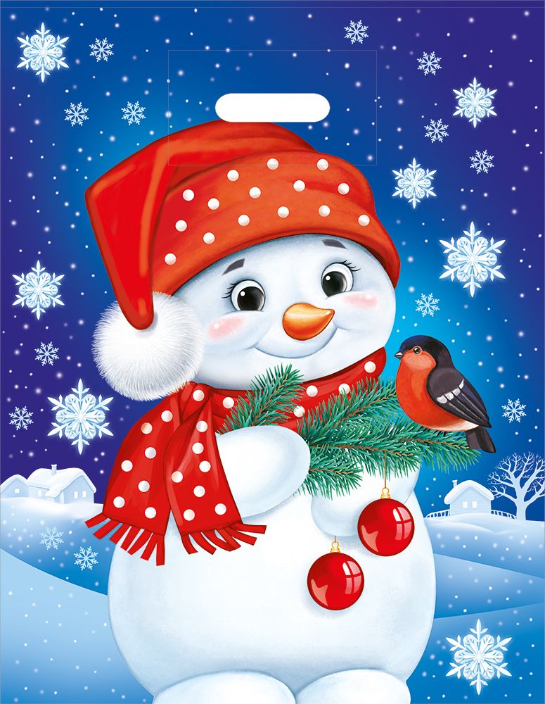 Полиэтиленовый пакет «Снеговик и снегирь»