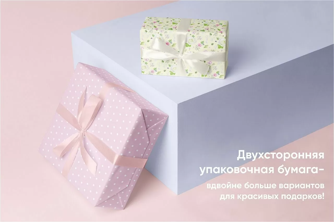 Упаковочная бумага с нежными цветами на светло-желтом фоне и белых горошинах на розовом фоне придаст оригинальности любому подарку и покажет виновнице торжества, как она важна и дорога. Очаровательное оформление порадует и юную девушку, и солидную даму на день рождения или 8 марта, профессиональный праздник или свадьбу. Двухсторонняя печать позволяет выбрать необходимую расцветку – цветочную или с узором. Оберточную бумагу можно использовать для оформления конфет, букетов, подарочных композиций и наборов, можно упаковать один большой презент или несколько маленьких.