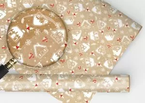 Упаковочная крафт бумага «Пряничные домики и ягоды»