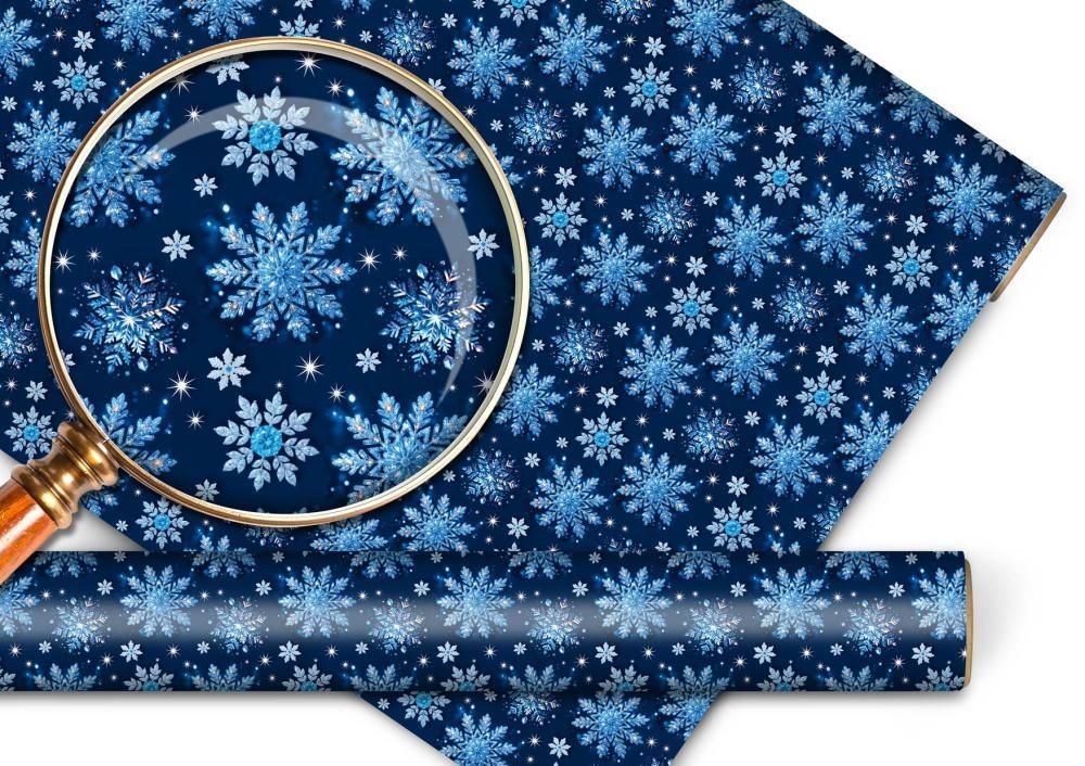 Упаковочная бумага формата А1 из мелованной бумаги предназначена для оформления подарков и розничной продукции в праздничный сезон, в первую очередь новогодний. Готовое изделие имеет размеры 974 × 674 мм, что обеспечивает удобство при упаковке как средних, так и крупногабаритных коробок и позволяет оптимизировать раскрой при серийной упаковке на точках продаж и в интернет-магазинах. Плотная мелованная основа обеспечивает достаточную жесткость, устойчивость к разрывам по сгибам и сохранение формы при транспортировке упакованных изделий, а гладкая поверхность способствует аккуратному прилеганию к упаковке и ровному формированию углов. На темно-синем фоне размещен повторяющийся рисунок из детально прорисованных снежинок разных размеров, что формирует нейтральный, но отчетливо зимний ассортиментный мотив, подходящий для широкого диапазона целевых аудиторий и товарных категорий — от подарков и сувениров до косметики, аксессуаров и кондитерских наборов. Поверхность дополнительно обработана глянцевым ВД-лаком, благодаря чему изображение отличается высокой четкостью, насыщенностью синего и голубого цветов и устойчивостью к истиранию при контакте с руками и соседними упаковками в коробах и на стеллажах; лак также снижает риск загрязнений и облегчает протирание пыли с поверхности. Отсутствие текста внутри и на лицевой стороне делает оформление универсальным для использования в различных торговых форматах, в том числе при необходимости комбинировать бумагу с фирменными наклейками, бирками или лентами бренда. Изделие поставляется по 1 листу, что удобно для тестовых закупок, подбора ассортимента и розничной продажи поштучно, а также позволяет точно планировать расход в небольших мастерских, шоурумах и офисах. Бумага легко режется, сгибается без растрескивания печати и подходит для ручной упаковки, крафт-оформления витрин, декорирования полок, фотозон и подарочных наборов, сохраняя стабильный внешний вид в течение всего периода эксплуатации.