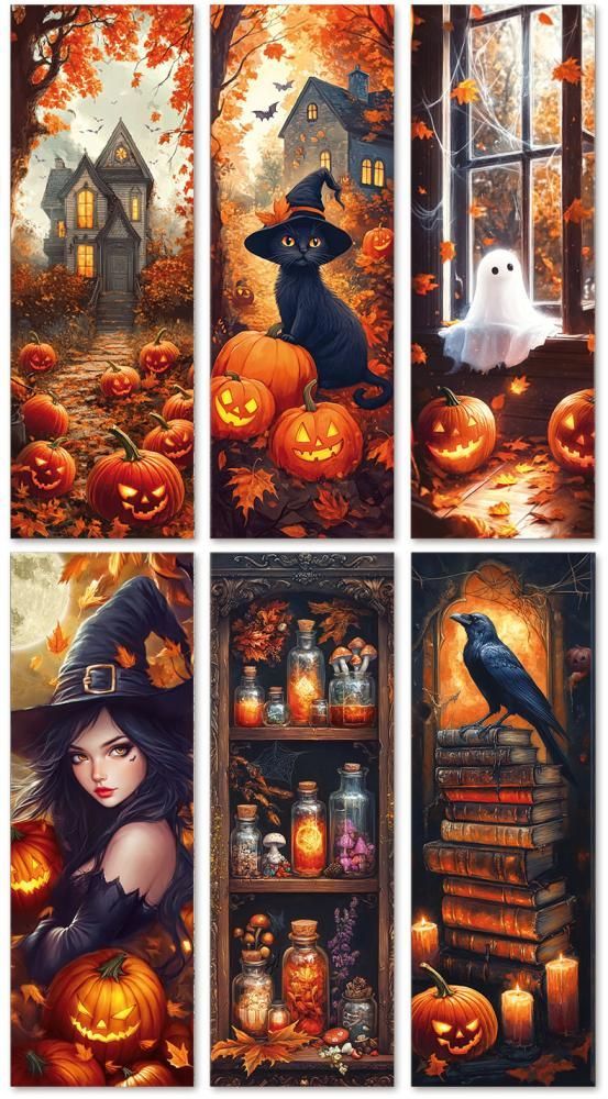 Набор закладок формата А6 выполнен из плотного картона и предназначен для интенсивного использования в книжной рознице, сувенирных отделах и канцелярских магазинах. В упаковке 1 изделие, каждая закладка имеет длину 160 мм и ширину 55 мм, что обеспечивает совместимость с большинством форматов книг, ежедневников и блокнотов. Картонная основа обладает достаточной жесткостью, хорошо держит форму, не деформируется при стандартной эксплуатации, устойчива к многократному перелистыванию страниц и удобна для длительного хранения на складе и в торговом зале. Поверхность без отделки облегчает укладку в стеллажи, упаковку в термоусадочную пленку или конверты, а также снижает риск повреждений при транспортировке крупными партиями. Дизайн набора выполнен в тематике Хэллоуина: на закладках изображены осенний пейзаж с тыквами и домом, черная кошка в шляпе, призрак у окна, ведьма, полки с колбами и ворон на стопке книг. Иллюстрации покрывают всю площадь изделия и служат визуальным ориентиром при выборе ассортимента к сезонным акциям, тематическим витринам и подарочным наборам к осенним праздникам. Отсутствие текста внутри делает закладки универсальными для покупателей с любым языком и возрастом, а также позволяет использовать их как вложение в книги, наборы для чтения, детские и подростковые подарочные комплекты. Размеры изделия удобны для фасовки в стандартные еврослот-пакеты, конверты или коробки, что упрощает логистику при оптовых поставках и позволяет эффективно планировать выкладку по цветовым и тематическим рядам. Для розничного пользователя закладки обеспечивают аккуратную фиксацию нужной страницы без утолщения корешка, подходят для художественной литературы, учебников и планеров, могут использоваться как небольшое дополнение к подарку или элемент домашнего сезонного декора.