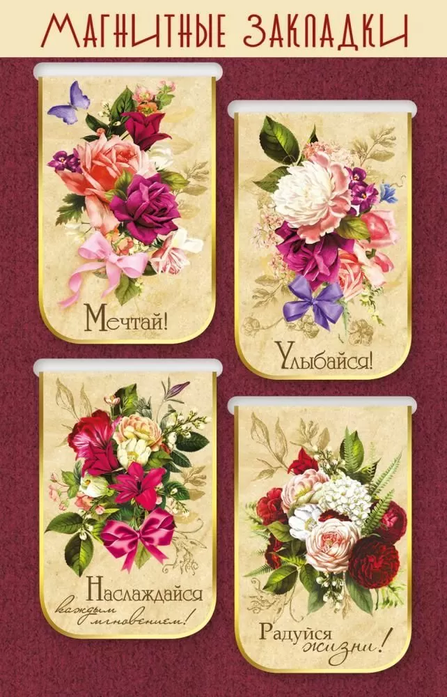 Магнитные закладки на подложке «Букеты цветов» (4 штуки)