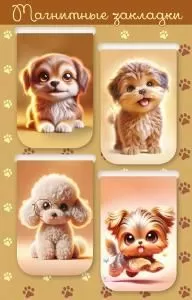 Магнитные закладки на подложке «Собачки» (4 штуки)