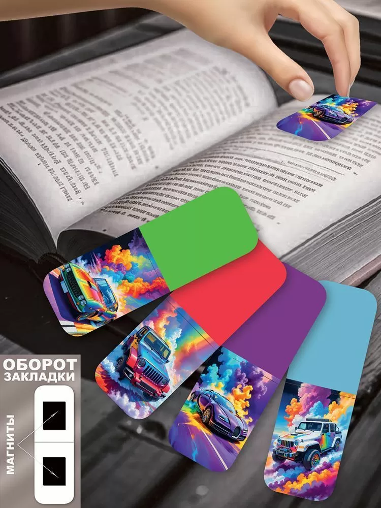 Магнитные закладки на подложке «Радужные машины» (4 штуки)