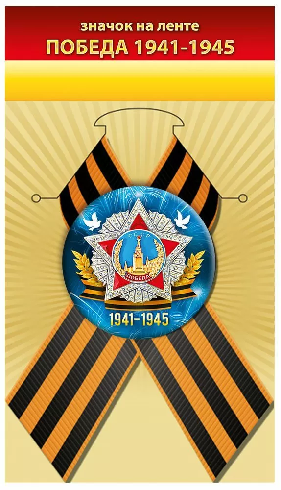 Значок «Победа 1941–1945» формата D 56 представляет собой круглый металлический элемент диаметром 56 мм с репсовой лентой в традиционной черно-оранжевой расцветке. Металл обеспечивает жесткость конструкции, устойчивость к деформации при регулярном ношении и сохранение формы при длительном хранении в складских условиях. Лицевая сторона выполнена полноцветной печатью с тематической символикой и датами, поверх нанесена глянцевая ламинация, которая защищает изображение от истирания, влаги и выгорания, упрощает уход и позволяет протирать поверхность без риска повредить рисунок. Репсовая лента обладает стабильной плотной фактурой, хорошо держит заложенную форму банта, не перекручивается и не растягивается, что важно при многократной эксплуатации на массовых мероприятиях. Размер 56×56 мм оптимален для визуальной заметности при размещении на верхней одежде, пиджаках, форменной одежде, сумках и рюкзаках, при этом изделие остается достаточно компактным для транспортировки крупными партиями и рационального размещения на витринах. Конструкция значка с лентой подходит для использования в организациях, учебных заведениях, муниципальных структурах и общественных объединениях при подготовке к памятным датам, легко интегрируется в ассортимент сопутствующей сувенирной и праздничной продукции. Изделие поставляется по 10 штук, что удобно при планировании оптовых закупок, формировании наборов для раздачи участникам мероприятий и последующей фасовке под розничную продажу. Универсальное тематическое оформление без персонализации делает значок пригодным как для единичной покупки, так и для применения в крупных акциях, где требуется выдержанный, однотипный внешний вид атрибутики.