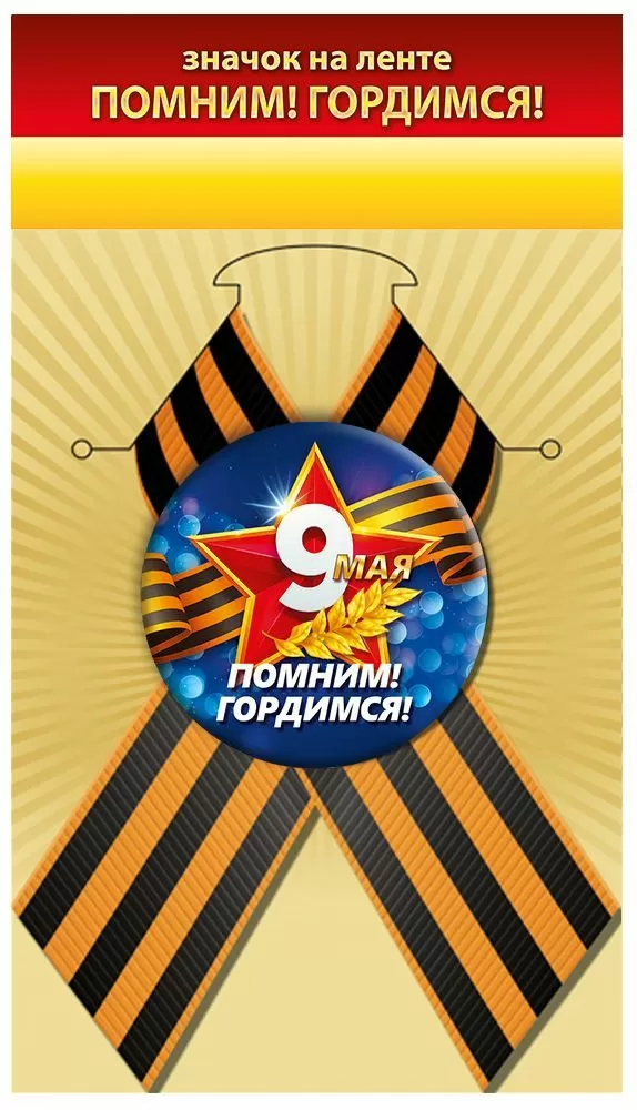 Значок металлический формата D 56 представляет собой круглое изделие диаметром 56 мм с полноцветным изображением ко Дню Победы: центральный элемент композиции — крупная цифра «9 Мая» на фоне красной звезды, георгиевской ленты и золотистого колоса, дополненная надписью «Помним! Гордимся!». Конструкция дополнена репсовой лентой традиционной черно-оранжевой расцветки, закрепленной за значком, что обеспечивает готовое решение для ношения на одежде, сумках, рюкзаках или головных уборах без необходимости дополнительного декора. Металлическая основа корпуса обеспечивает жесткость, устойчивость к деформации и длительный срок службы при многократном использовании в сезонных мероприятиях и массовых акциях. Лицевая сторона имеет глянцевую ламинацию, которая защищает печать от истирания, влаги и выгорания, сохраняя четкость текста и яркость цвета при транспортировке, хранении и эксплуатации. Размер 56×56 мм оптимален для визуальной заметности на расстоянии и одновременно не утяжеляет легкую ткань, что важно при использовании на верхней одежде и форменной униформе. Изделие рассчитано на массовые закупки для организаций, учебных заведений, муниципальных и коммерческих структур: компактные габариты и стандартный круглый формат упрощают складирование, учет и фасовку, а единый дизайн позволяет формировать однородный внешний вид участников мероприятий. В упаковке 10. Такой значок может применяться как разовый элемент оформления к памятным датам, так и как постоянный атрибут корпоративных и общественных программ, связанных с чествованием ветеранов и участием в городских акциях, при этом сохраняется универсальность использования для частных покупателей в быту и в семейных торжествах, посвященных 9 Мая.