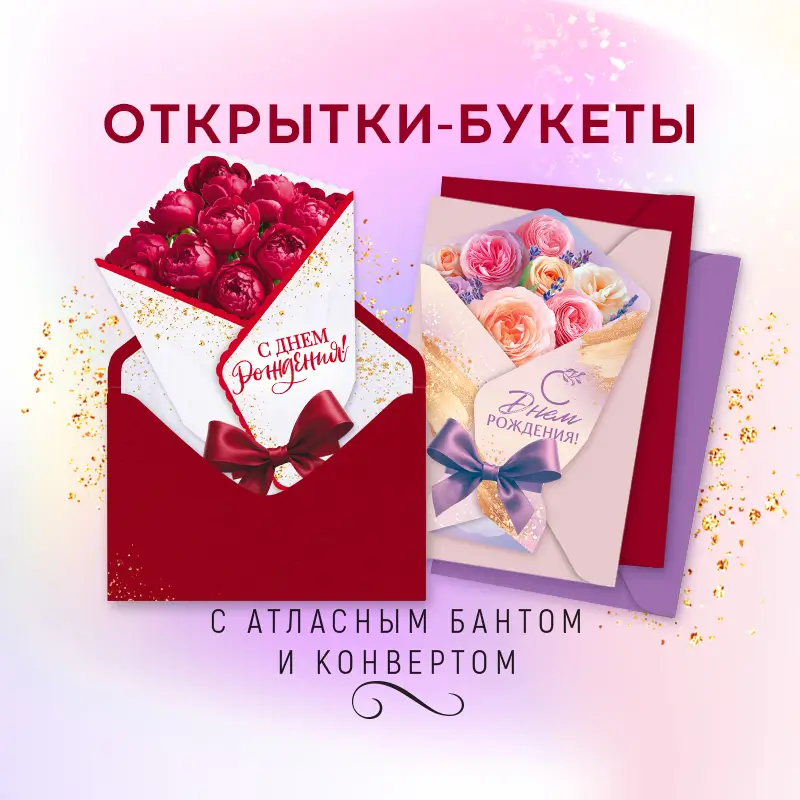 В каталоге на нашем сайте вы сможете ознакомиться с различной праздничной продукцией и заказать открытки-букетики оптом.