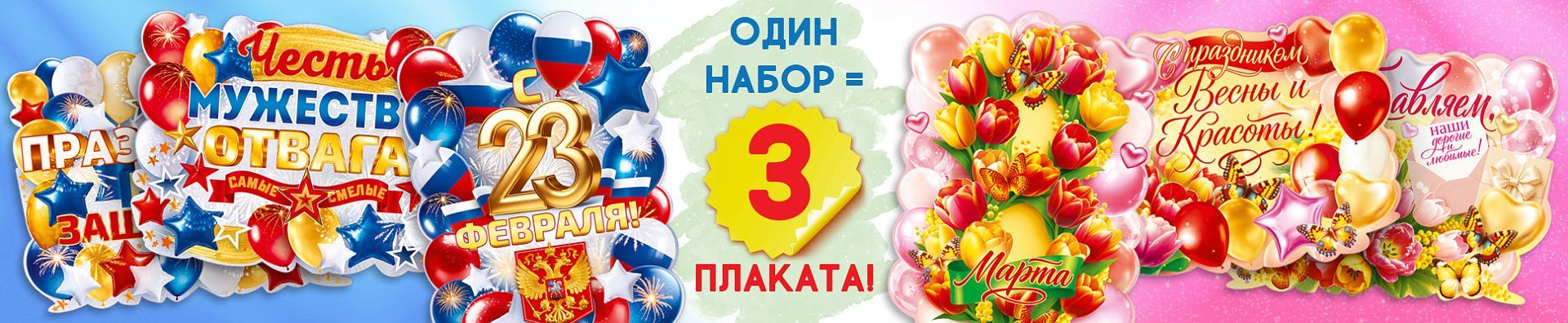 Наборы плакатов «8 Марта» и «23 Февраля» помогут вам: