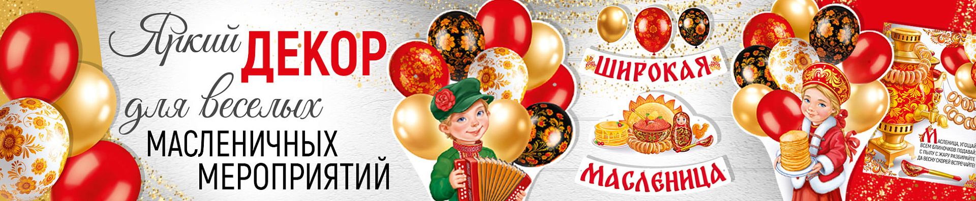 Масленица всегда ассоциируется с теплом, радостью и настоящим народным размахом. Чтобы создать в помещении атмосферу шумного и доброго праздника без долгой подготовки, мы предлагаем готовое решение для декора — оформительский набор «Широкая Масленица».