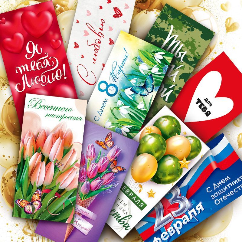 Хотите ли вы поздравить мужчину с Днём защитника Отечества, прекрасную девушку – с Международным женским днём или самого дорогого и близкого человека – с днём Святого Валентина, наши конверты помогут сделать этот момент незабываемым! Предлагаем широкий ассортимент дизайнов на любой вкус: классические, минималистичные, строгие, шутливые… Подходящий вариант найдётся обязательно! Удобный формат конвертов позволяет поместить в них любую денежную сумму, подарочный сертификат, билеты в театр или на концерт.