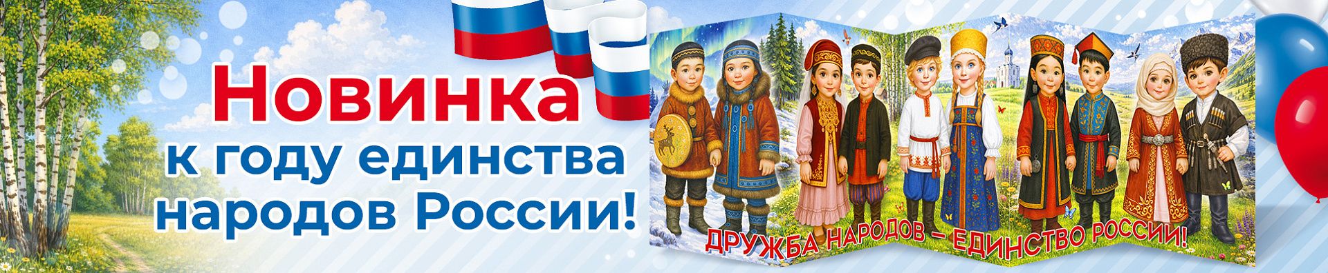 Стенд выполнен в виде складной конструкции-гармошки с продуманной композицией и красочным изображением. На лицевой стороне размещена яркая цветная иллюстрация с детьми в национальных костюмах народов России на фоне разнообразных пейзажей, дополненная девизом «Дружба народов – единство России!». Такой стенд станет заметным элементом оформления и поможет подчеркнуть тематику культурного многообразия. Стенд отлично подойдёт для украшения помещений в любых учебных учреждениях — школах, детских садах, колледжах, а также библиотеках и домах культуры.
