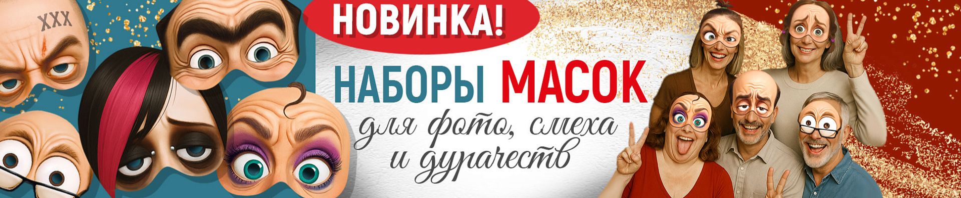 Иногда для ярких эмоций не нужен повод — достаточно немного фантазии и хорошего настроения. Весёлые маски легко превращают обычную встречу в шумный праздник, фотосессию — в источник смеха, а компанию друзей — в настоящих героев комедийных кадров. Именно поэтому мы рады представить новинку — наборы масок для фото, смеха и дурачеств, созданные для того, чтобы дарить радость здесь и сейчас.